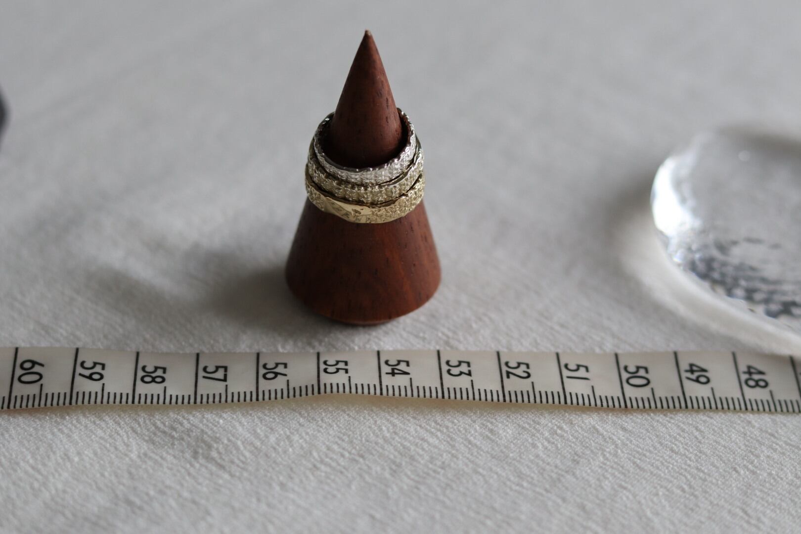 編み目の凹凸が美しいからこそ、メッキ加工のリングをご用意しました。